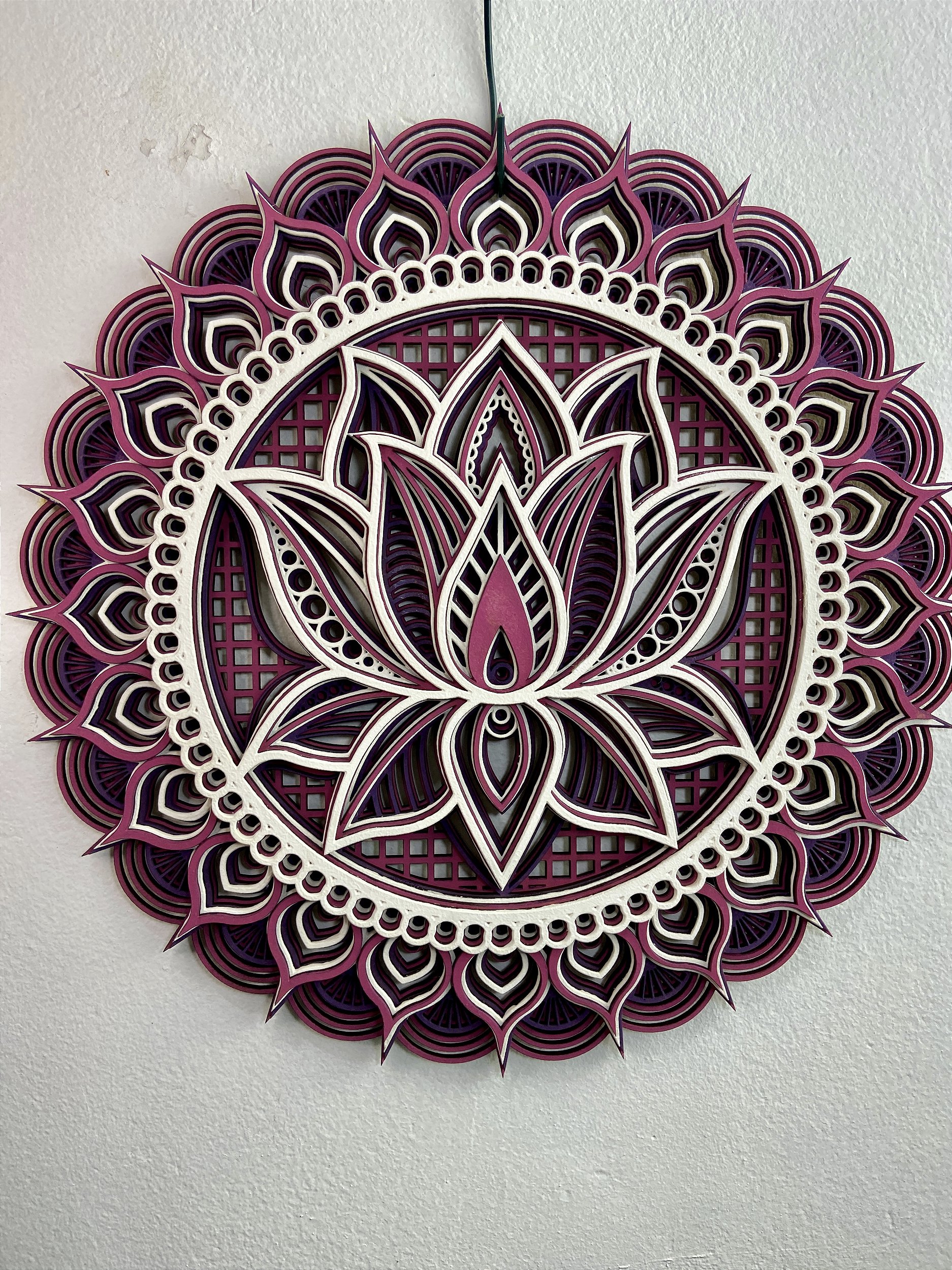 A geometria que envolve a flor de lótus pode refletir o caminho da transformação espiritual, começando no centro (o ser) e se expandindo para além de si mesmo (o universo), mostrando a jornada de autoconhecimento e ascensão espiritual. A mandala se torna uma ferramenta visual para meditação e reflexão, ajudando a pessoa a se alinhar com a ordem universal e a alcançar um estado de equilíbrio, paz e consciência elevada.